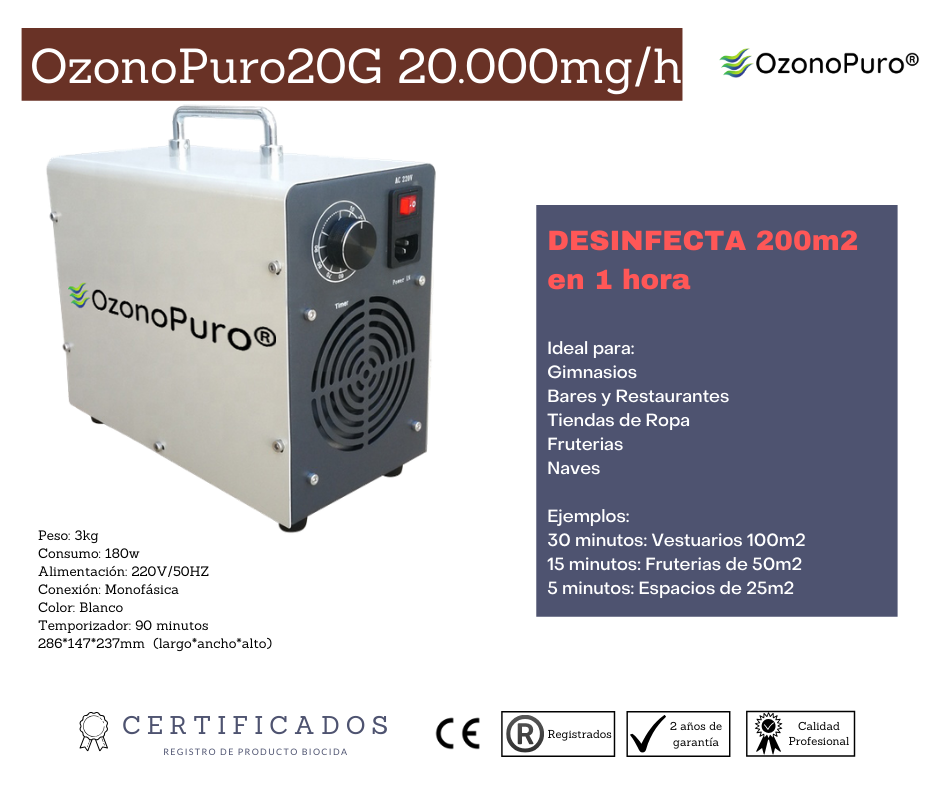 O3 es una forma alotrópica de oxígeno. Sus moléculas están formadas por tres átomos de oxígeno y tiene un alto poder oxidante, siendo una molécula altamente inestable. Higieniza y desodoriza ambientes sin el uso de químicos y sin dejar residuos, se puede utilizar para higienizar agua, aire y ambientes.